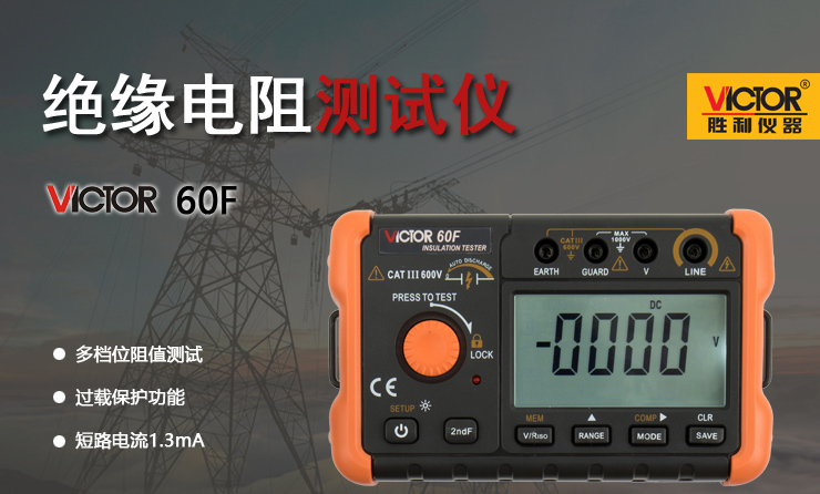 VICTOR 60F 絕緣電阻測試儀是一臺(tái)智能微型絕緣測試儀器,可以完成絕緣電阻、電壓等參數(shù)測量,性能好,操作簡便。