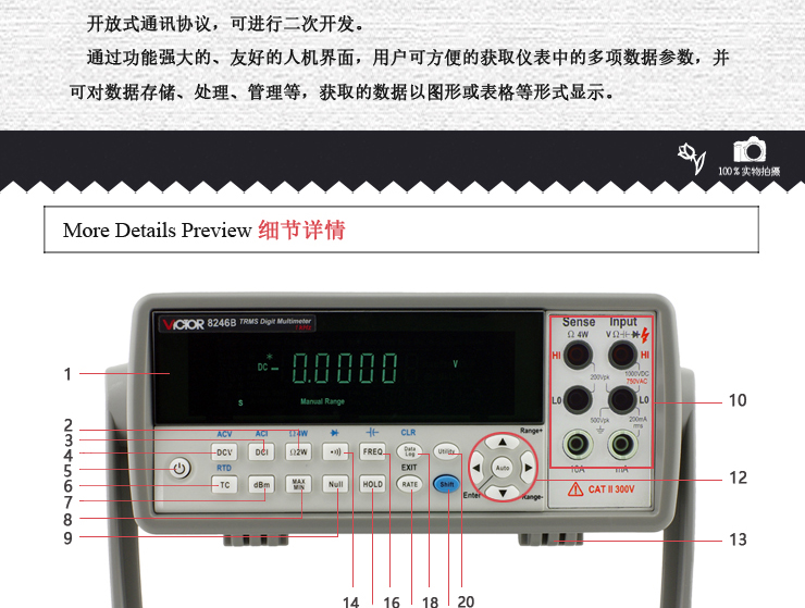 4、V、Ω、Hz輸入端子間和地間施加最大電壓:1000VDC / ACrms