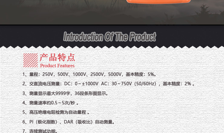 VICTOR 3126 絕緣電阻測試儀是一臺智能微型儀器即絕緣測試儀器,整機電路設計采用微機技術設計為核心,以大規模集成電路和數字電路相組合,配有強大的測量和數據處理軟件,完成絕緣電阻、電壓等參數測量,性能穩定,操作簡便。對于適用于現場電力設備以及供電線路的測量和檢修的用戶,本儀器是您的理想的選擇。