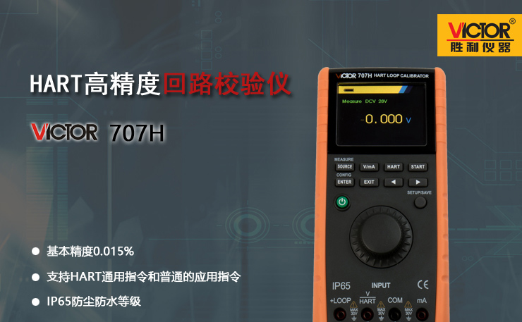 VICTOR 707H HART高精度回路校驗(yàn)儀是一款高精度回路校驗(yàn)儀,本儀表內(nèi)置有HART調(diào)制解調(diào)器,可實(shí)現(xiàn)HART基礎(chǔ)指令。