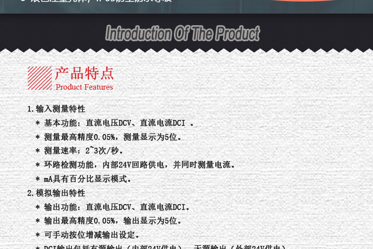 * 輸出最高精度0.05%,輸出顯示為5位。