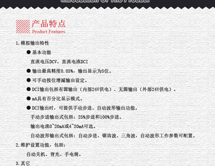 自動波形輸出式包括:自動步進、鋸齒波、三角波,自動波形工作參數(shù)可配置。