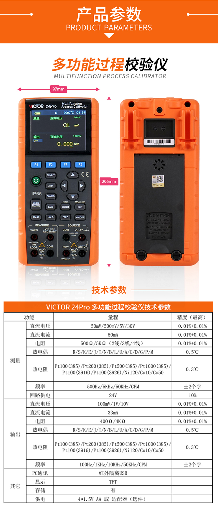 VICTOR 24Pro多功能過程校驗儀是一款多功能、高精度、高穩(wěn)定度的現場過程校驗器,提供強大的測量和輸出功能,幾乎滿足過程控制現場所有的校驗工作。